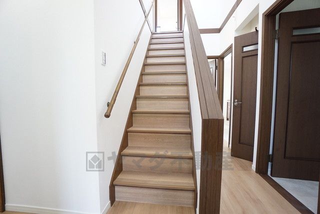 見通しがよく昇降しやすいストレートタイプの階段です。お子様も高齢の方も安心して上り下りができる手摺がついた安心設計です。