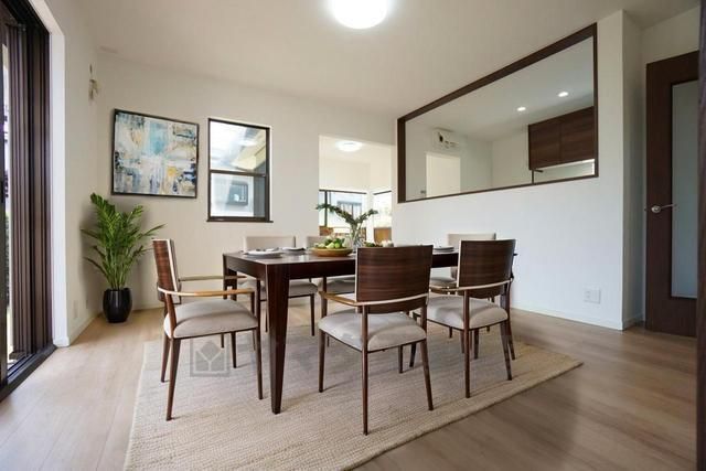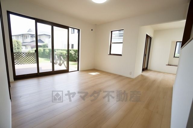 大きな掃き出し窓のあるリビングは、陽光あふれる明るい空間です。ゆったりと寛げる憩いの場となりそうです。