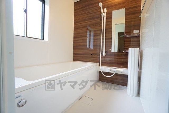 1日の疲れを癒すくつろぎのバスルーム。足を伸ばしてもゆったりと入れるサイズです。お子様と一緒にお風呂に入っても狭くないですね^^