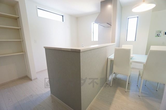 キッチン後方にパントリーあり^^食料品はもちろん、長期保存ができるもの、調理器具、防災グッズなどを入れておくのもいいですね。