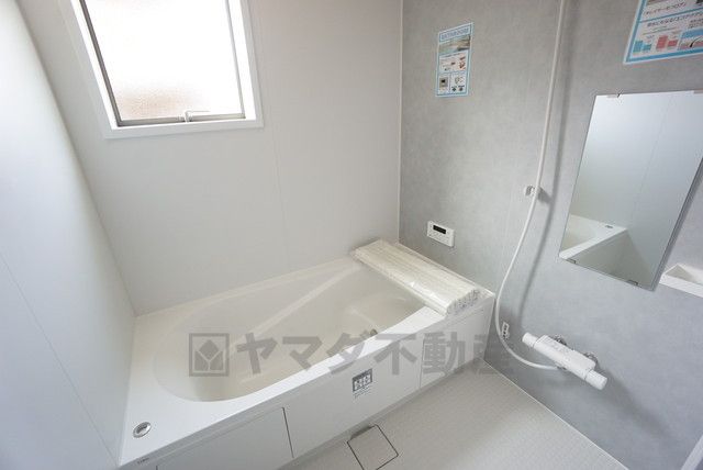 1日の疲れを癒すくつろぎのバスルーム。足を伸ばしてもゆったりと入れるサイズです。お子様と一緒にお風呂に入っても狭くないですね^^