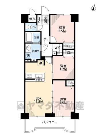 LDK11.8畳、洋5.5畳、洋4.2畳、S0畳 |