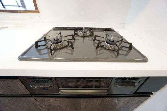3種類の料理が同時に調理できる、3口ガスコンロ。忙しい夕食の支度時間が短縮できて嬉しいですね。