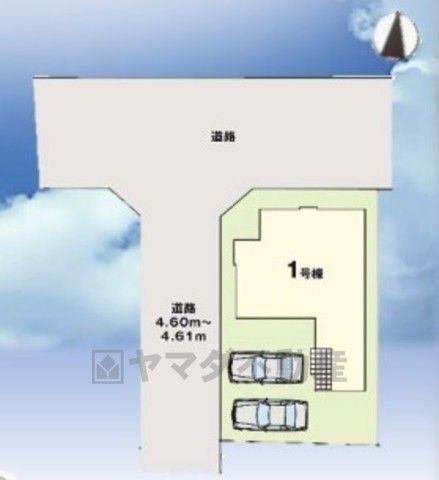 角地^^前面道路は北側約6.6m・西側約4.6mの公道に面しています。 カースペースは2台分を確保^^限定1棟です^^