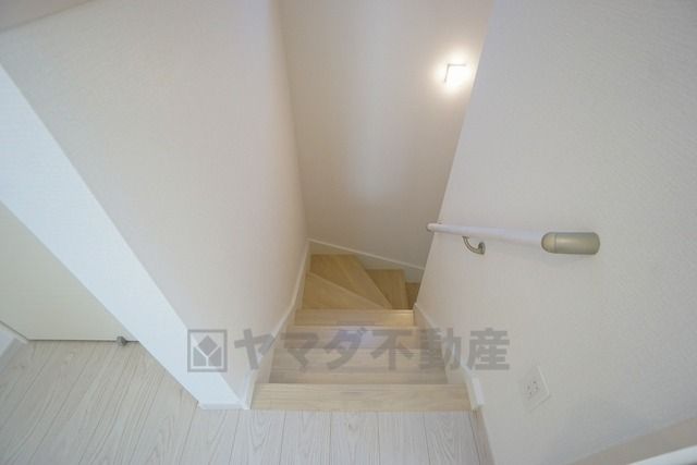 ご年配の方でも安心できる、手すり付き階段です^^段差も低めで設定されてますので安全性にも優れてますね^^
