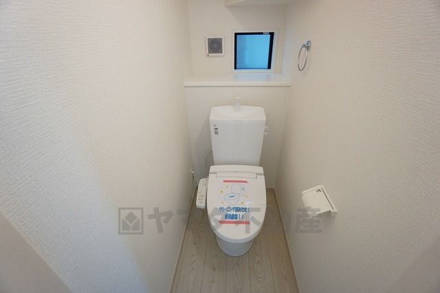 洗浄機付トイレです。節水機能もあるので、安心して使えますね。もちろん、1階2階の2ヶ所にトイレがあるので、忙しい朝にもゆとりができますね。