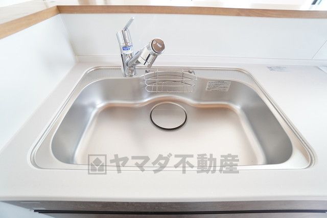 大きなお鍋も楽々洗える幅の広いシンクです^^ステンレスシンクなので簡単にお掃除できますよ。洗剤やスポンジもすっきりできる収納付き。
