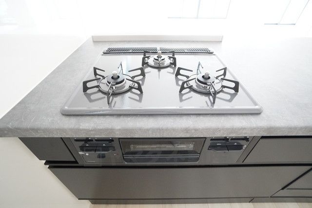 3種類の料理が同時に調理できる、3口ガスコンロ。忙しい夕食の支度時間が短縮できて効率よくお料理が楽しめます。
