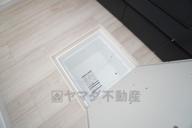 キッチンに床下収納があります。長期保存ができるもの、調理器具、防災グッズを入れておくのもいいですね。