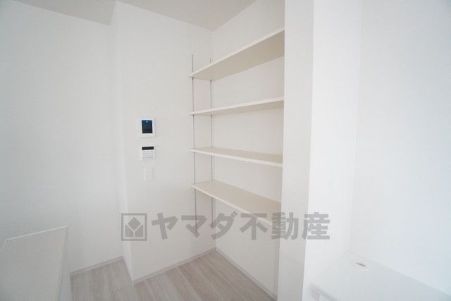キッチン横にパントリー付き。長期保存ができるもの、調理器具、防災グッズを入れておくのもいいですね。
