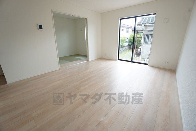 大きな掃き出し窓のあるリビングは、陽光あふれる明るい空間です。ゆったりと寛げる憩いの場となりそうです。
