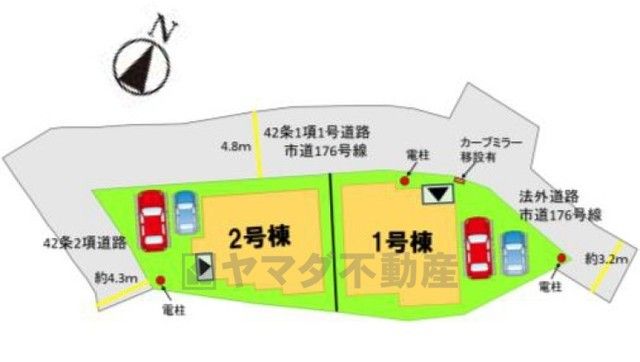 1号棟。カースペースは2台付きです。 ご夫婦で一台づつ所有できます。