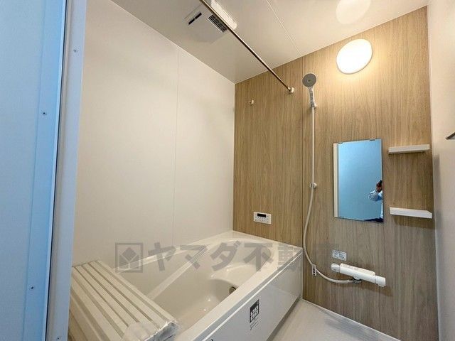 1日の疲れを癒すくつろぎのバスルーム。足を伸ばしてもゆったりと入れるサイズです。お子様と一緒にお風呂に入っても狭くないですね^^