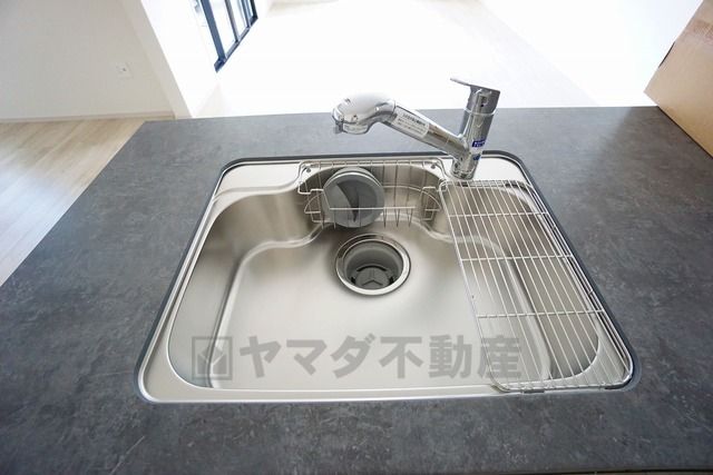 広々とした凸型シンクに洗剤ポケットを標準装備。大きなお鍋など洗いやすいです。洗剤や石鹸、スポンジもすっきりできる収納付き。