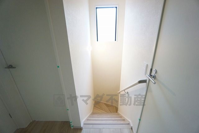 ご年配の方でも安心できる、手すり付き階段です^^段差も低めで設定されてますので安全性にも優れてますね^^