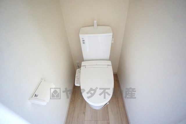 温水洗浄機付トイレです。節水機能もあるので、安心して使えますね。もちろん、1階2階の2ヶ所にトイレがあるので、忙しい朝にもゆとりができますね。