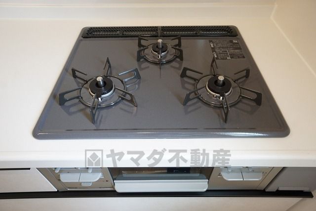 3種類の料理が同時に調理できる、3口ガスコンロ。忙しい夕食の支度時間が短縮できて効率よくお料理が楽しめます。