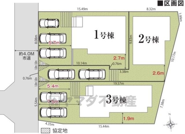 全3区画の新築戸建です^^ 左側が1号棟、右側が3号棟、奥が2号棟。