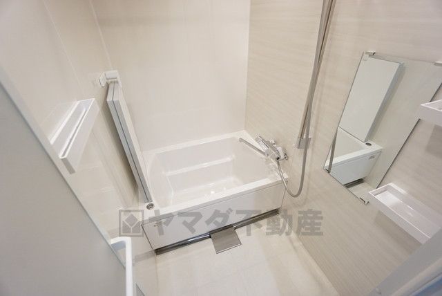 1日の疲れを癒すくつろぎのバスルーム。足を伸ばしてもゆったりと入れるサイズです。お子様と一緒にお風呂に入っても狭くないですね^^