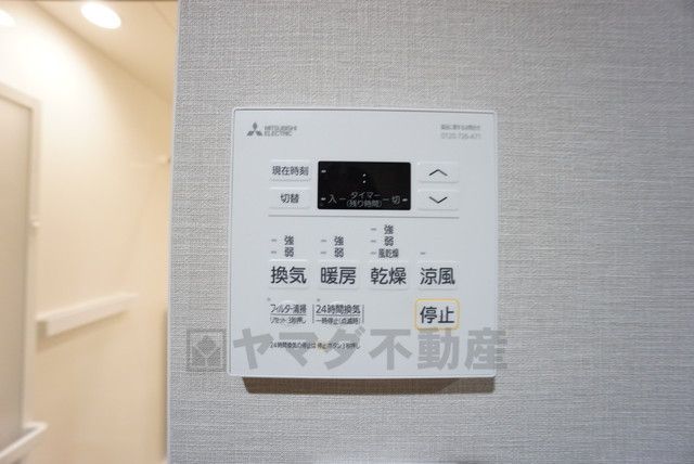 雨の日の洗濯も安心できる浴室暖房乾燥機付き浴室。暖房、乾燥、涼風、換気の4つの機能が付いています。タイマー付きです。
