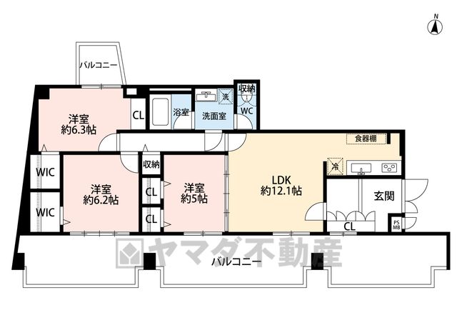 | 間取り詳細 | LDK12.1畳、洋6.3畳、洋6.2畳、洋5畳 | 土地権利 | 所有権 |