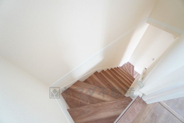 ご年配の方や小さなお子様でも安心できる、手すり付き階段です^^段差も低めで設定されてますので安全性にも優れてますね^^