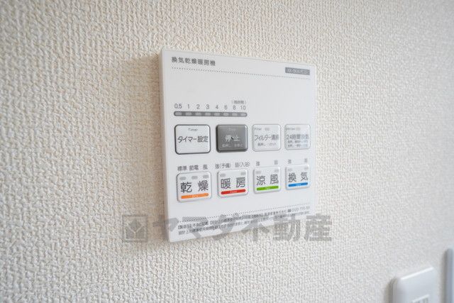 雨の日の洗濯も安心できる浴室暖房乾燥機付き浴室。 浴室暖房乾燥機には、暖房、乾燥、涼風、換気の4つの機能が付いています。タイマー付きです。