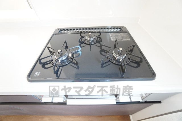 3口コンロなので、効率よくお料理が楽しめます。毎日のお料理も楽しくなりますね^^ 魚焼きグリル付きです。