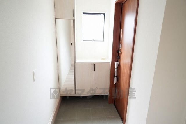 採光も考えられた明るい玄関です。たっぷり収納できるシューズボックス付きなので、家族全員の靴がきれいに整頓できます。