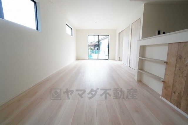 大きな掃き出し窓のあるリビングは、陽光あふれる明るい空間です。ゆったりと寛げる憩いの場となりそうです。