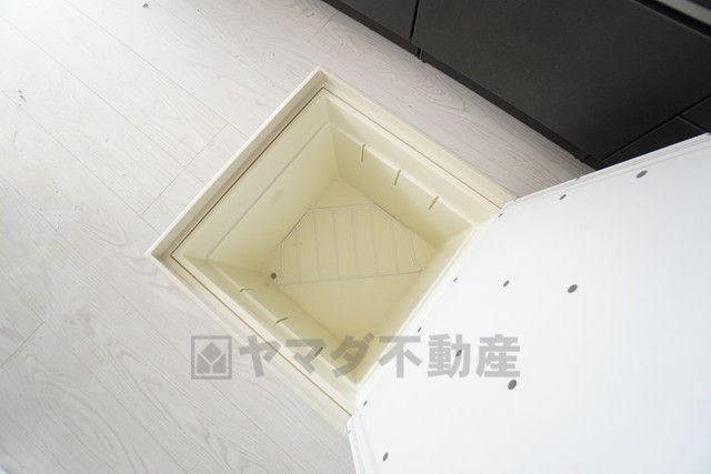 キッチンに床下収納があります。長期保存ができるもの、調理器具、防災グッズを入れておくのもいいですね。