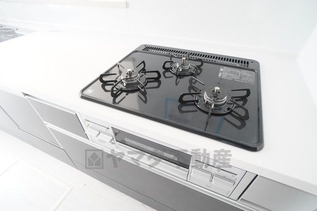 3種類の料理が同時に調理できる、3口ガスコンロ。忙しい夕食の支度時間が短縮できて効率よくお料理が楽しめます。