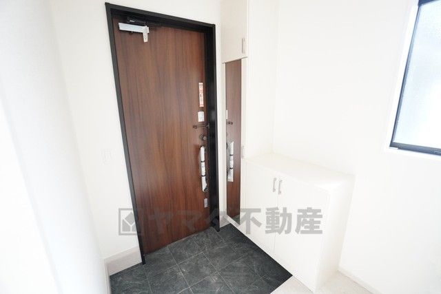 採光も考えられた明るい玄関です。たっぷり収納できるシューズボックス付きなので、家族全員の靴がきれいに整頓できます。