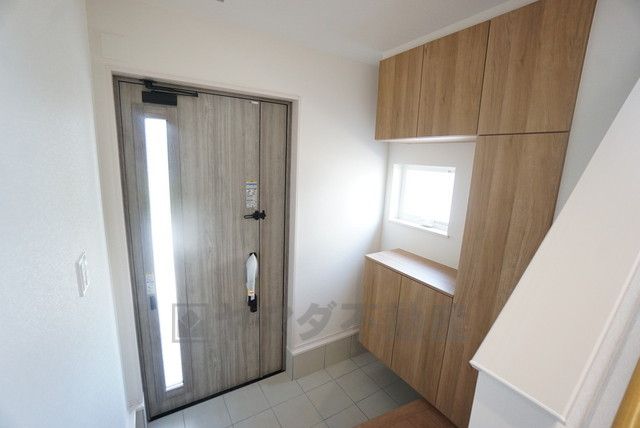 採光も考えられた明るい玄関です。たっぷり収納できるシューズBOX付きです。棚の上にお花や写真を飾っても良いですね。