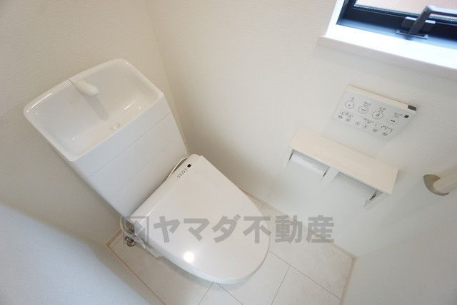 温水洗浄機付トイレです。トイレは2ヶ所設けられているので、来客時にも気兼ねなく使えますね。小窓付きで換気も出来ます。