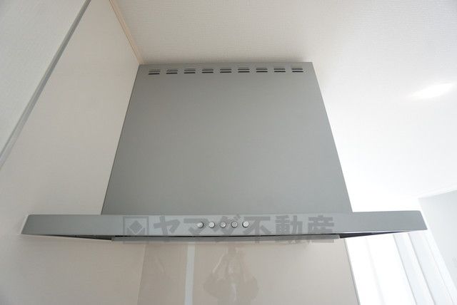 スタイリッシュなレンジフード^^調理中に出る湯気や油分などを効率よく外に逃がしてくれます。
