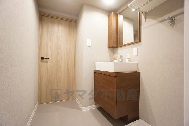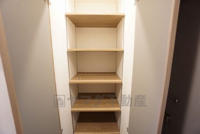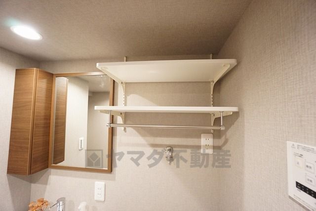 便利な洗面室収納。散らかりがちなバスタオルや清掃用品、化粧品や予備のシャンプー等もきれいに整頓できますね。
