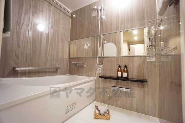 1日の疲れを癒すくつろぎのバスルーム。足を伸ばしてもゆったりと入れるサイズです。お子様と一緒にお風呂に入っても狭くないですね^^