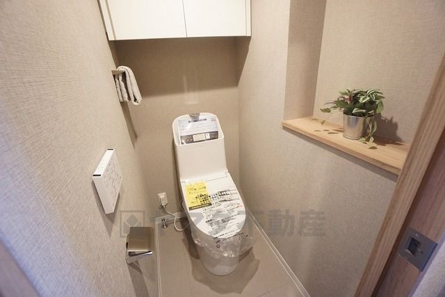 温水洗浄機付トイレです。節水機能もあるので、安心して使えますね。汚れをガードする構造でサッと一拭き、お手入れが簡単。