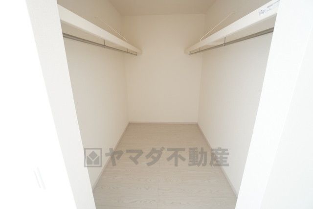 洋室にはハンガーパイプ付きのウォークインクローゼットが設けられています。たっぷり収納できるので衣替えの心配もいりませんね^^