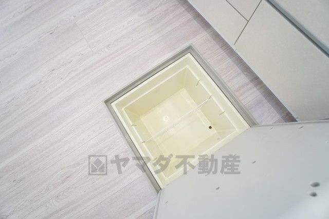 キッチンに床下収納があります。長期保存ができるもの、調理器具、防災グッズを入れておくのもいいですね。
