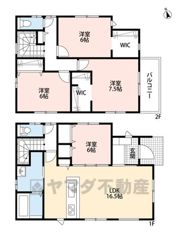 LDK16.5畳(1F)、洋6畳(1F)、洋7.5畳(2F)、洋6畳(2F) |
