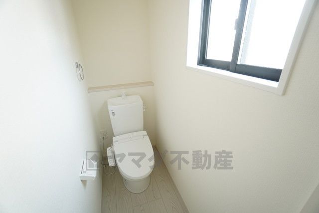 1階2階の2ヶ所にトイレがありますので、忙しい朝にも家族に気を使わず、ゆとりが生まれますね^^ 小窓付きで換気する時に便利です^^
