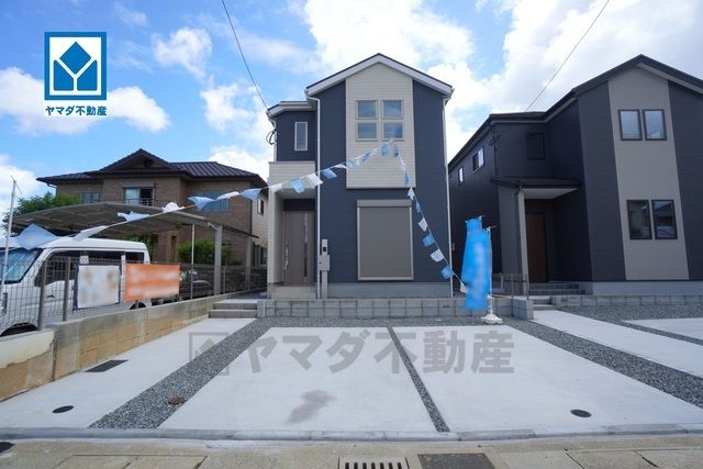 全3棟新築戸建カースペース2台付き。流行に左右されないベーシックなカラーリングは、永住にふさわしい佇まいです。