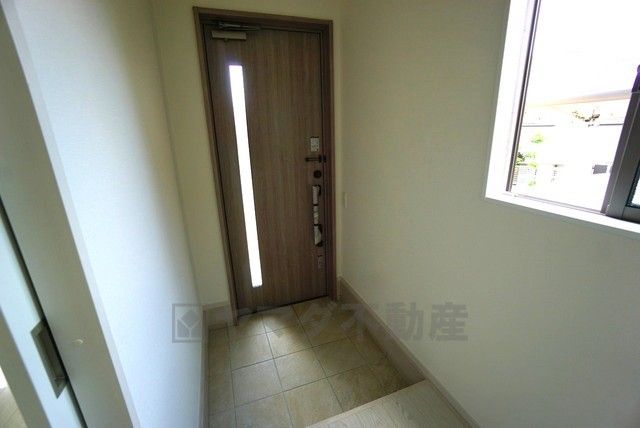 玄関扉にスリット、すぐ近くに窓のある明るい玄関です^^