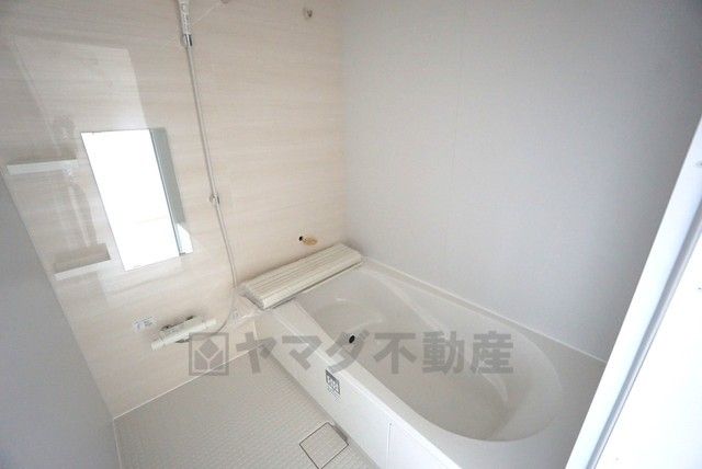 1日の疲れを癒すくつろぎのバスルーム。足を伸ばしてもゆったりと入れるサイズです。お子様と一緒にお風呂に入っても狭くないですね^^