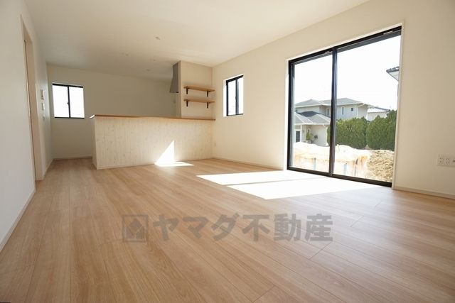 同仕様写真。対面式キッチンを中心としたリビングダイニングで家族の会話が弾みそうです。
