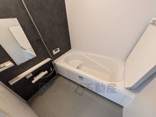 1日の疲れを癒すくつろぎのバスルーム。足を伸ばしてもゆったりと入れるサイズです。お子様と一緒にお風呂に入っても狭くないですね^^
