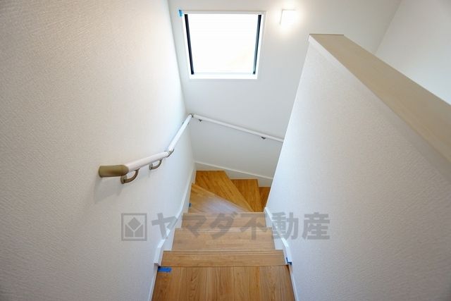 同仕様写真。ご年配の方でも安心できる、手すり付き階段です^^段差も低めで設定されてますので安全性にも優れてますね^^