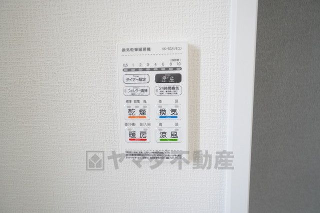 雨の日の洗濯も安心できる浴室暖房乾燥機付き浴室。リモコンで操作もボタン1つで簡単。 浴室暖房乾燥機には、暖房、乾燥、涼風、換気の4つの機能が付いています。
